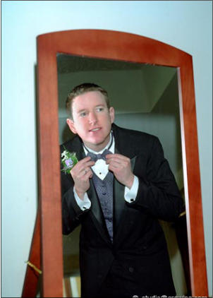 Groom adjusts tie